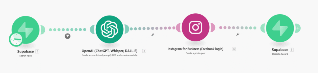 Po udanej publikacji automat z Make.com robi jeszcze jedną rzecz: wraca do Supabase i zapisuje link do opublikowanego posta oraz zmienia jego status na “Opublikowany”.