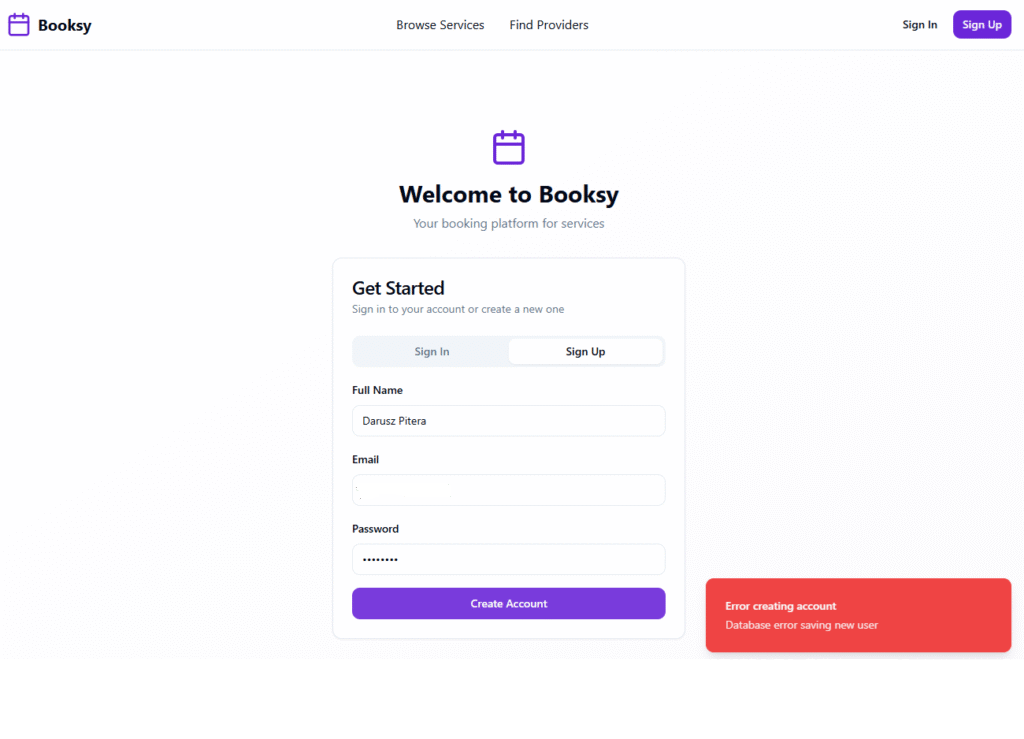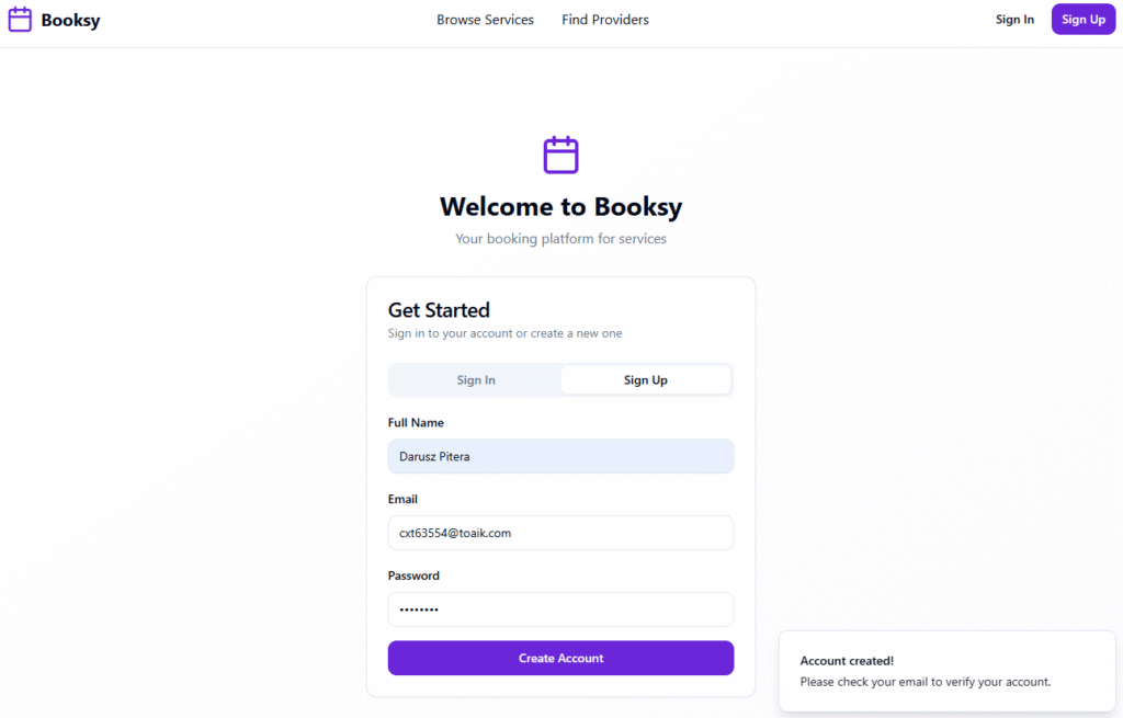 Secure Supabase Auth with separate sign-up flows for customers and service providers, role-based access, and encrypted personal data (passwords stored only in Supabase Auth).